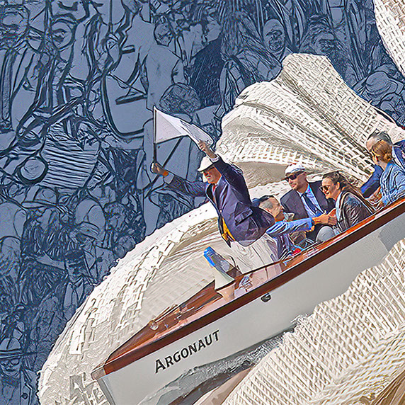 A lost tradition from the 1920's was to watch the races from a huge crowd of boats on the river, this work recreates this and brings the boats back.